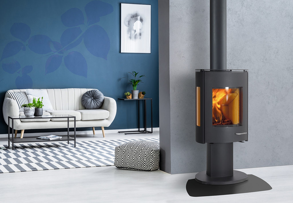 ILD 15 Eco to nowoczesny piec na drewno usadowiony na kolumnie w duńskim designie.