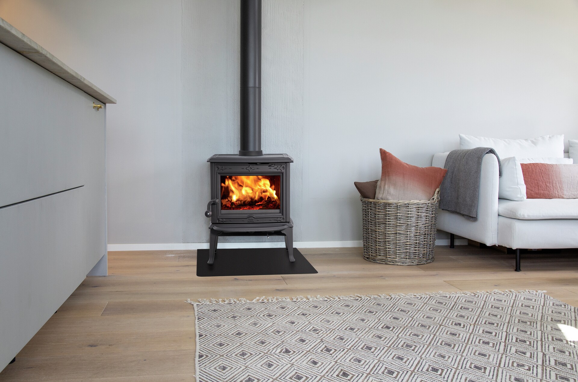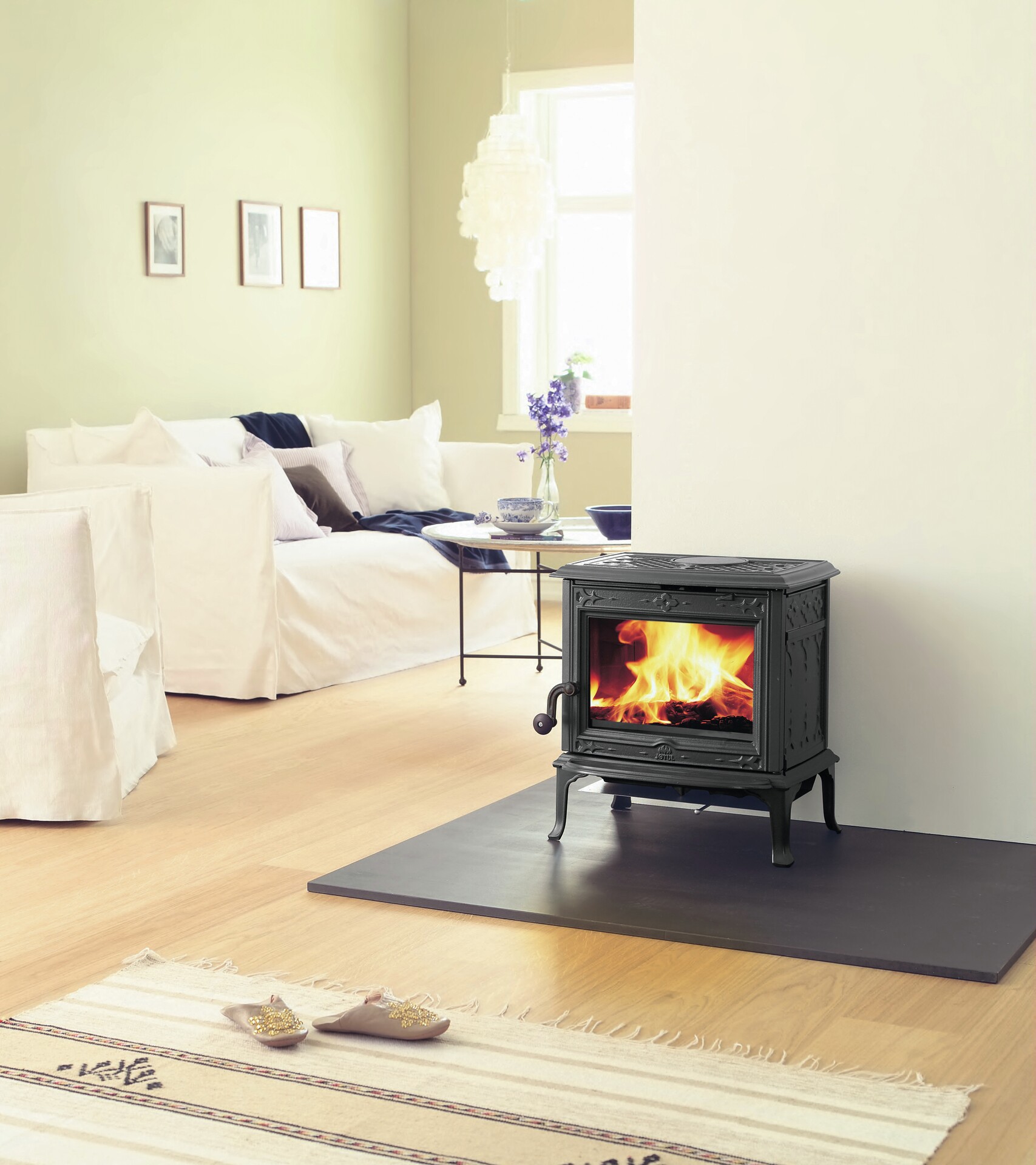 Jotul F 100 ECO LL Special Edition, jest to wersja pieca z pełnym przeszkleniem na drzwiach która nie posiada żeliwnych szprosów na szybie. System czystej szyby zapobiega osadzaniu się sadzy, a dodatkowo system CB redukuje emisję cząstek o 90 % a zużycie drewna o 40 % dzięki wyższej wydajności.