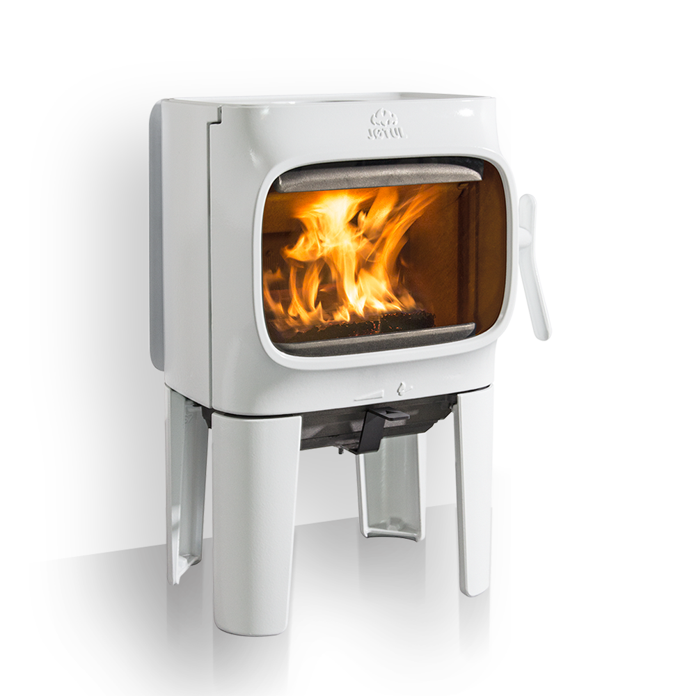 Jotul F 105 R LL WHE to niewielkich rozmiarów piec, wyróżnia się dużymi przeszklonymi drzwiami co zapewnia piękny widok ognia. Manualne sterowanie wlotem powietrza sprawia że piec jest nad wyraz prosty w użytkowaniu. Do wyboru są trzy rodzaje osadzenia pieca: Nogi krótkie (SL), lub długie (LL) oraz podstawa żeliwna (B). Dodatkowo opcjonalnie możemy zakupić półkę popiołową i górną płytę steatytową. Piec w wersji WHE (biała emalia WHE)