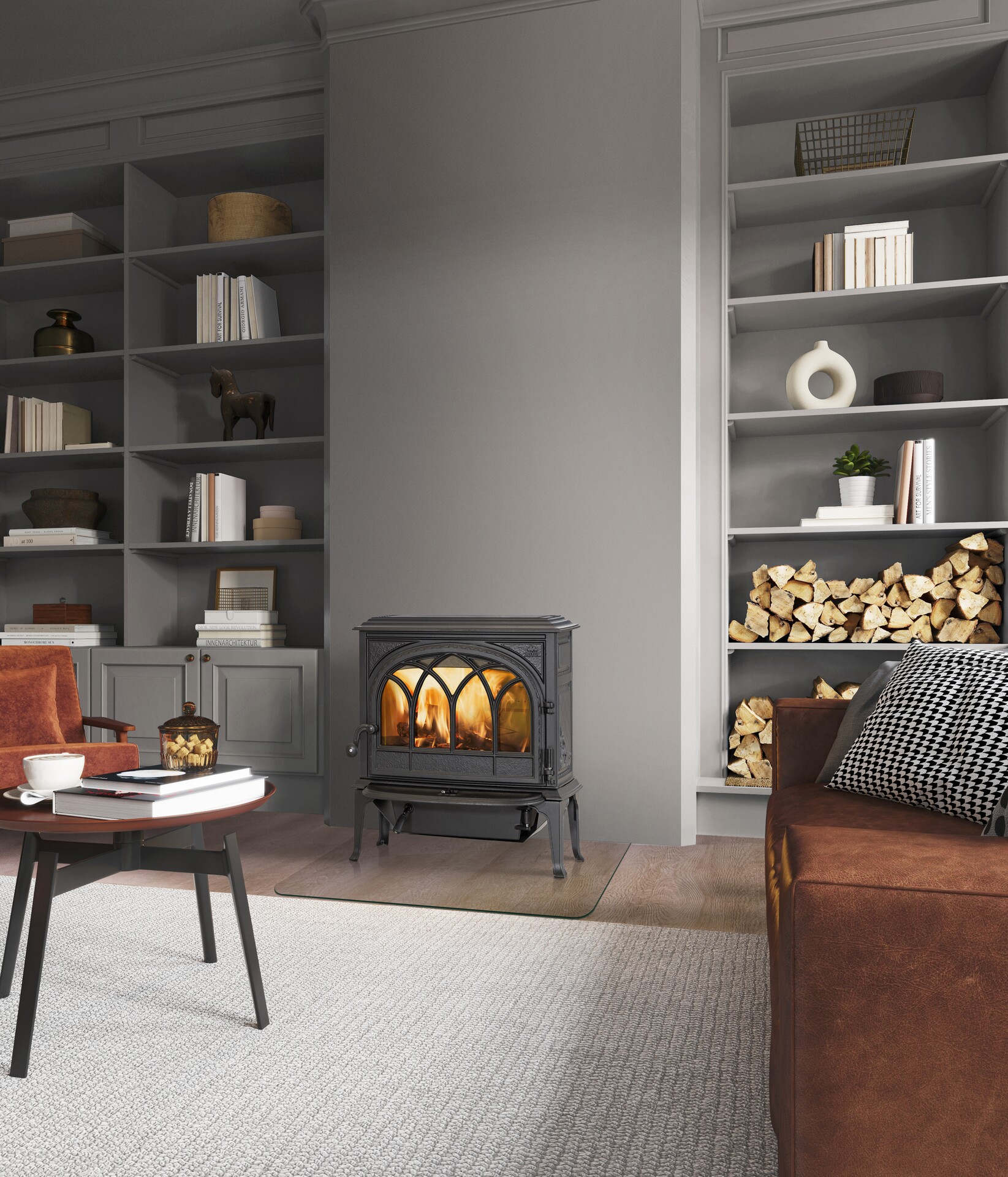 Jotul F 400 ECO BP, duży piec na drewno, mieszczący polana o długości 50 cm. Wyposażony jest w szufladę popielnikową oraz nowoczesny system CB z dopalaniem spalin. Przestronne szklane drzwi, zapewniają wspaniały widok na płonący ogień. Na bocznych ścianach pieca wyrzeźbiony jest wzór który przedstawia część wybrzeża Norwegii, a na samych drzwiach od strony wewnętrznej wygrawerowana jest historia pieca.