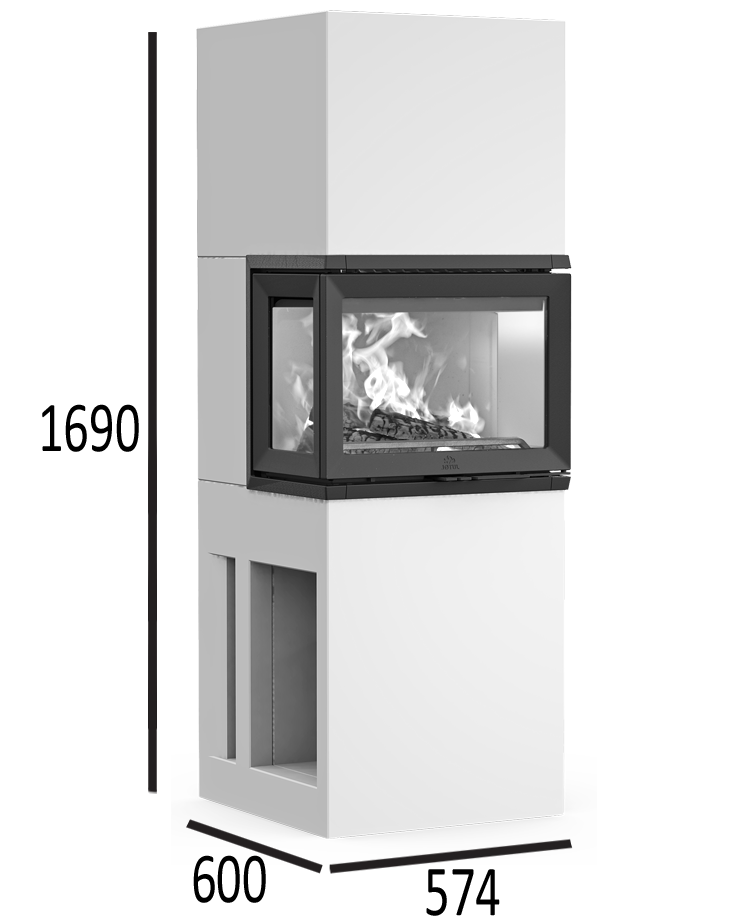 Jotul FS 74 to nowoczesna obudowa kominkowa, wykonana z betonu, dedykowana do wkładu kominkowego trzyszybowego Jotul I 520 FRL. Obudowa posiada praktyczną półkę która może posłużyć do składowania drewna. Jest to wersja głębsza od modelu Jotul FS 73.