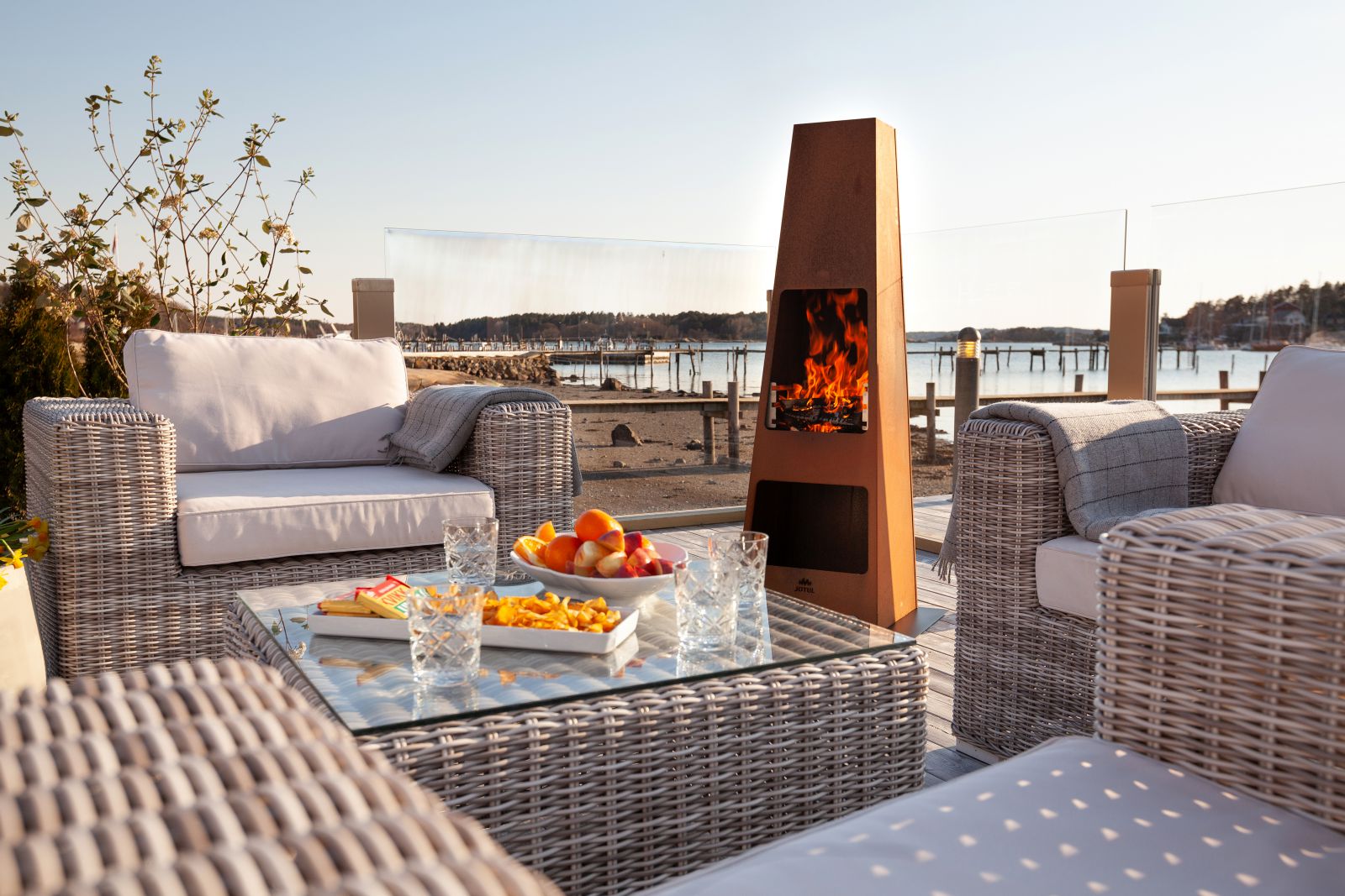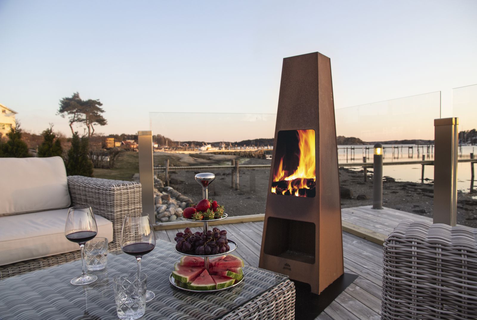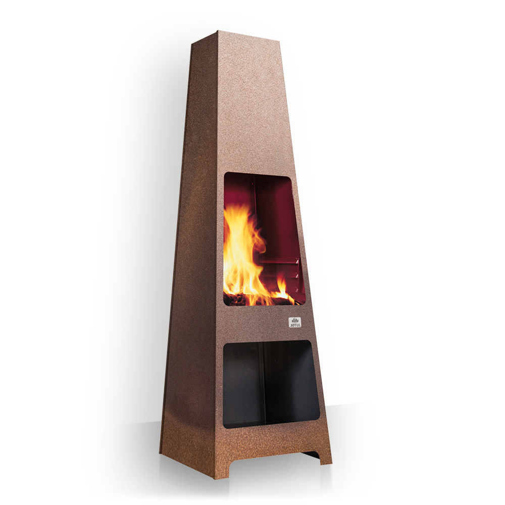 2290Ten zewnętrzny kominek tworzy ciepły i przytulny nastrój, dzięki czemu można spędzić nawet dłuższe wieczory na zewnątrz. Jotul Loke pozwala być blisko otwartego ognia z jego wysoką i mocną konstrukcją - solidny kominek, który można pozostawić na zewnątrz przez cały rok. Jest zaprojektowany zarówno jako kominek, aby zapewnić atmosferę i ciepło i być używany do grillowania. Dostępna jest również płyta podstawy do ochrony powierzchni pod kominkiem. Jotul Loke można pozostawić na zewnątrz przez cały rok. Jest dostępny w wykończeniu ze stali kortenowskiej, który ma odporną na warunki atmosferyczne, szorstką i zardzewiałą powierzchnię.