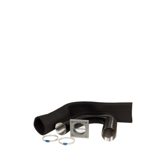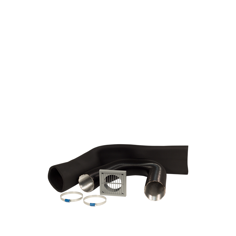 Dopływ powietrza zewnętrznego umożliwia doprowadzenie powietrza z zewnątrz do komory spalania. W komplecie kratka zewnętrzna z tworzywa, rura elastyczna Aluspiro, kanał izolacyjny i opaski zaciskowe.