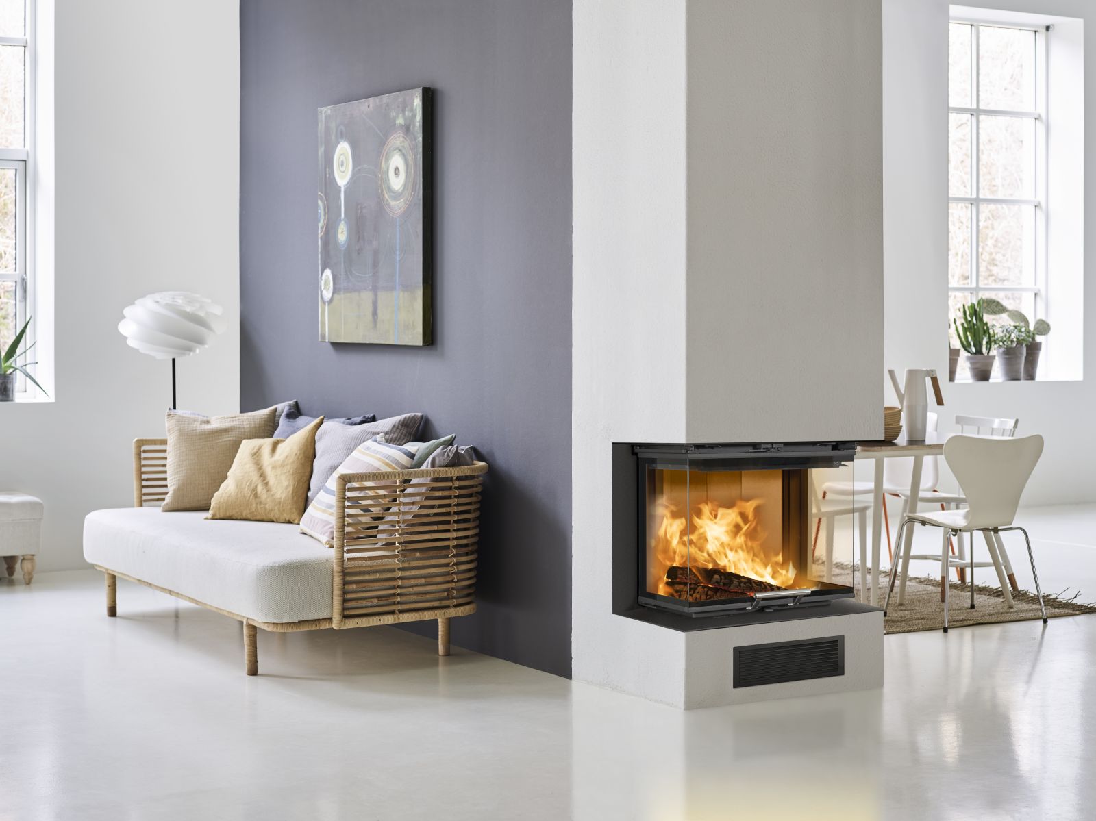 Wkład kominkowy Scan 5004 FRL pasuje do tradycyjnych i nowoczesnych obudów. Duża komora spalania umożliwia załadunek drewna o długości do 45 cm. Płyty wewnątrz kominka wykonane zostały z szamotu który zapewnia jasny wygląd i wrażenie przestronności. Precyzyjny mechanizm gilotynowy z miękkim zamkiem ułatwia otwieranie drzwi.