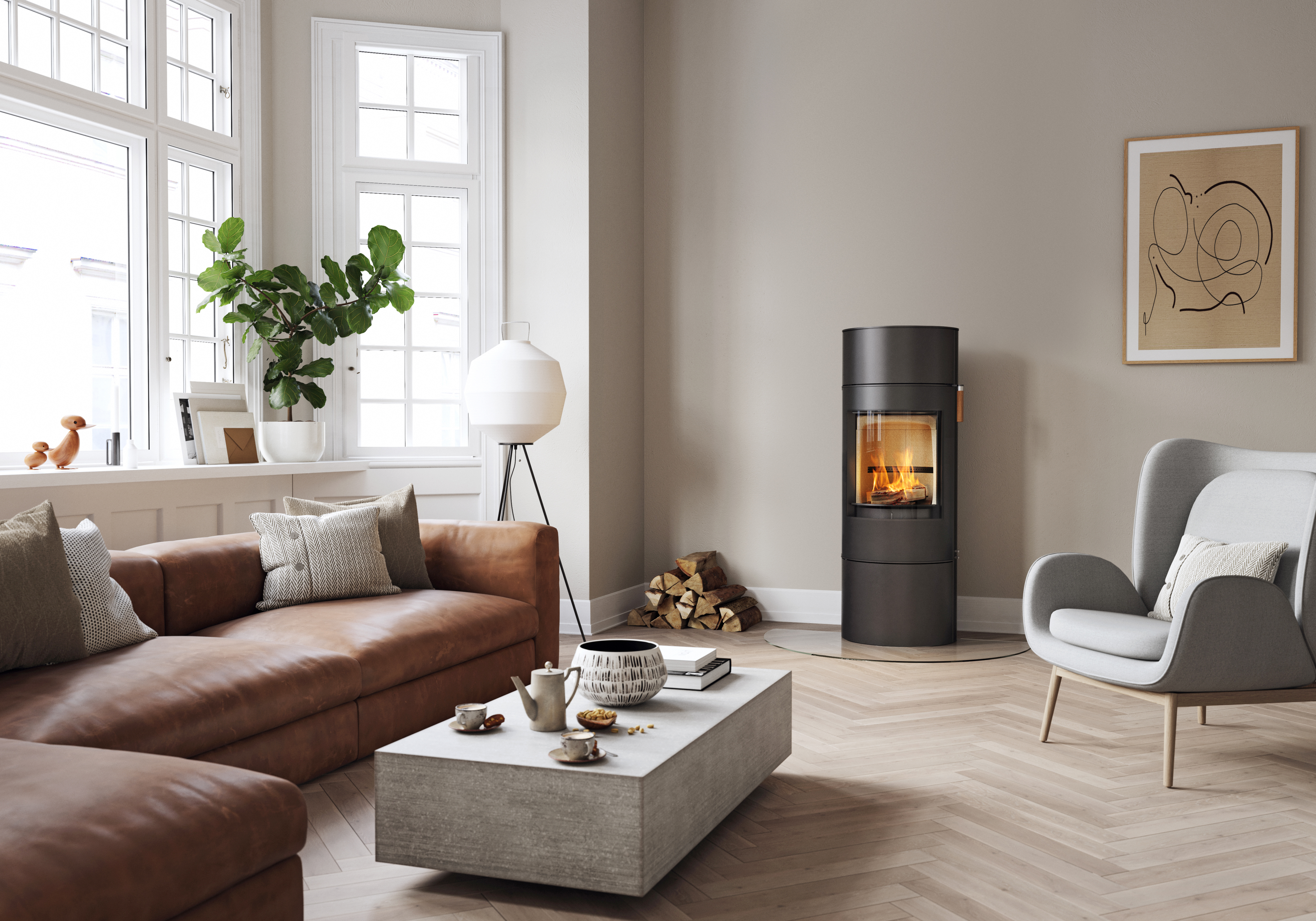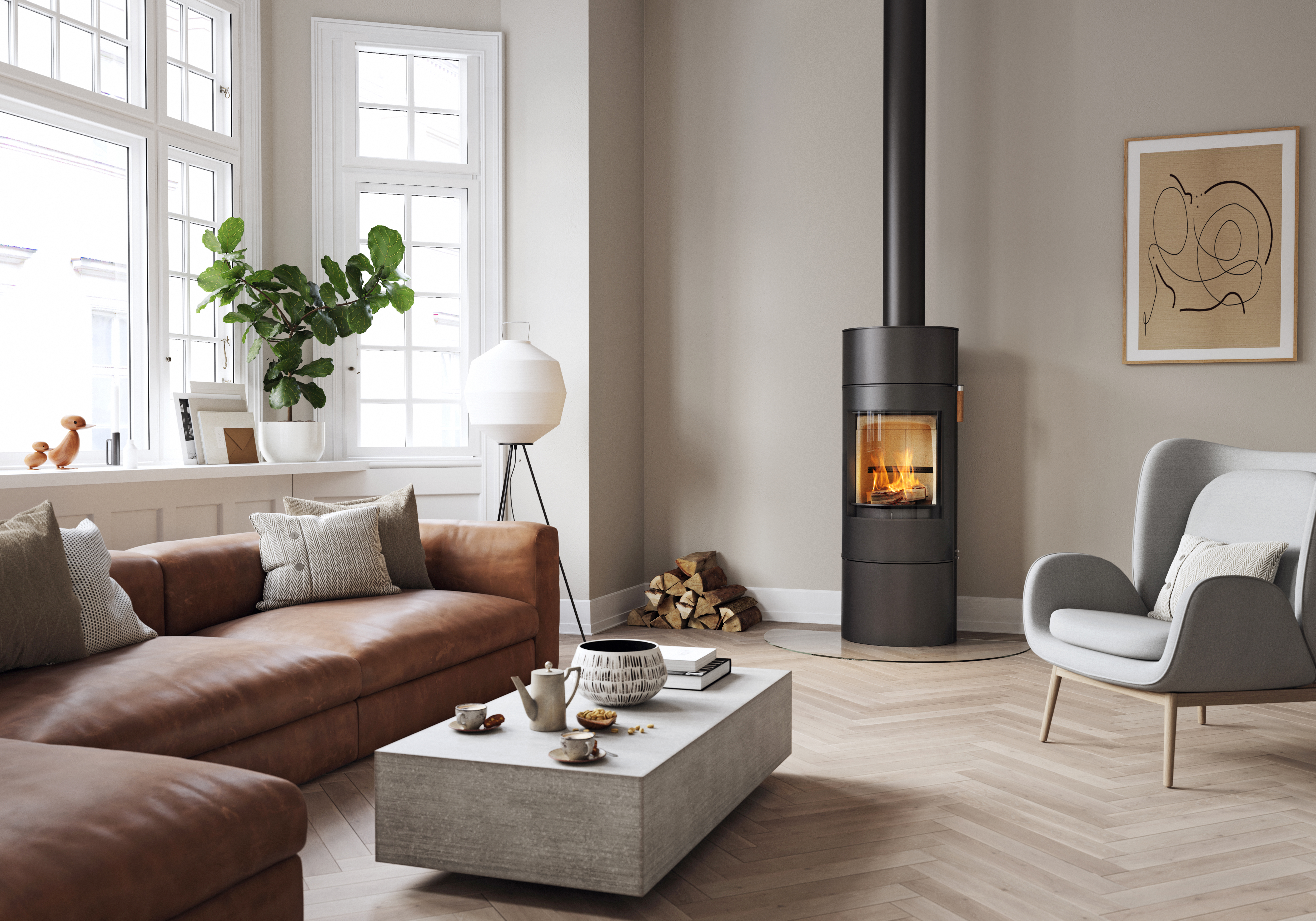 Scan 84 Classic to jeden z modeli z serii Scan 84. Piec jest wyposażony w funkcję cichego domykania drzwi co sprawia jego bezszelestne zamykanie. Rękojeść z litego dębu została umieszczona tak aby użytkowanie było praktyczne i wygodne. Do wyboru są trzy różne odcienie kolorystyczne uchwytu (opcja). Daje Ci to swobodę tworzenia detali wnętrza, które mogą zdobić Twój dom przez wiele lat lub być wymieniane zgodnie z życzeniem. Ta seria ma kilka możliwości detali, które podnoszą design i funkcjonalność na wyższy poziom. Piec można zamontować na obrotowej podstawie, dzięki czemu można obrócić cały piec i cieszyć się ogniem z ulubionego miejsca w pokoju.
